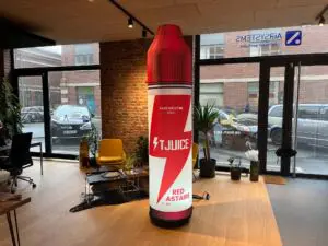 Un packaging gonflable T Juice, réplique de la fiole Red Astaire Le packaging gonflable est un outil de communication simple...