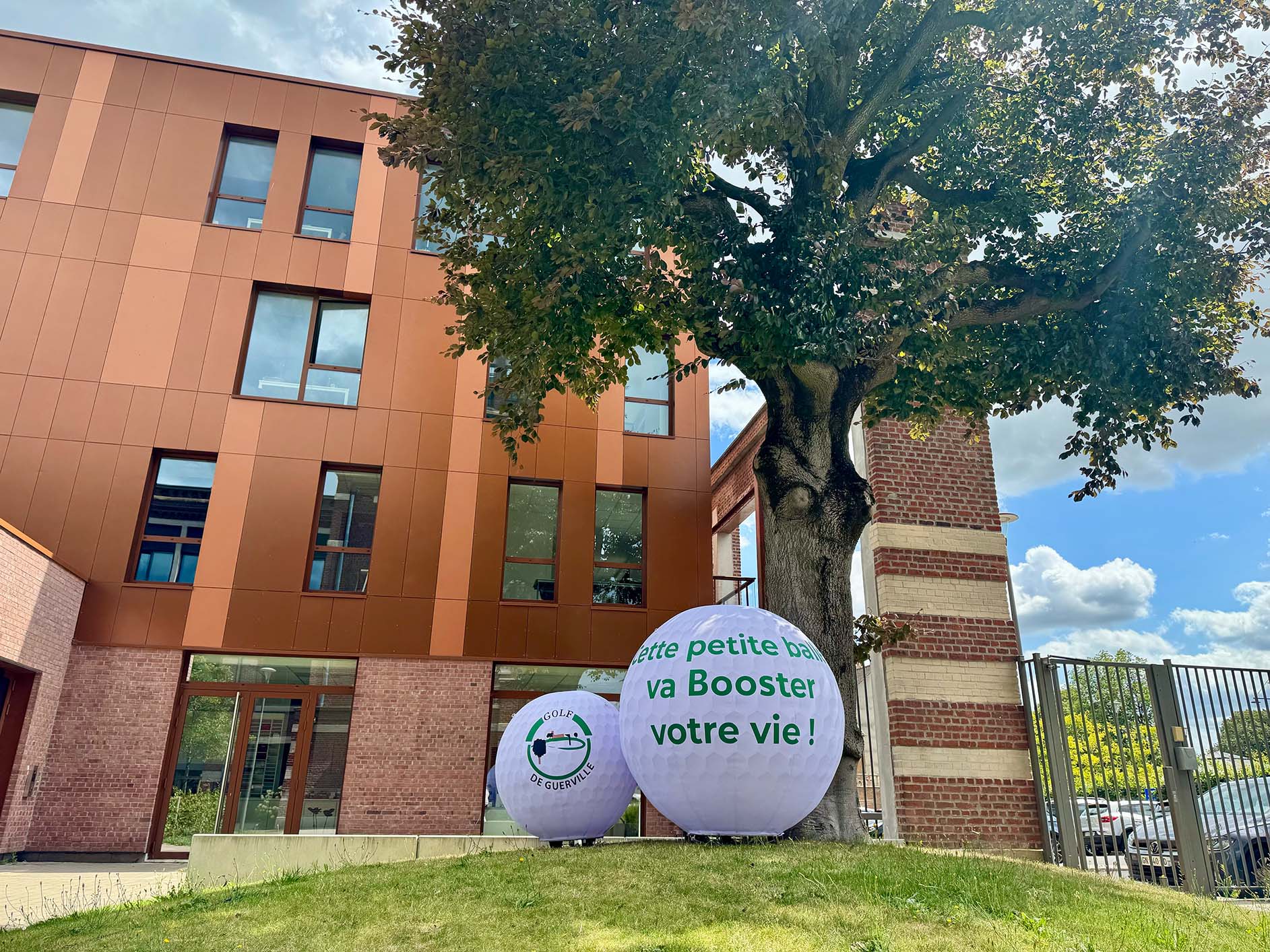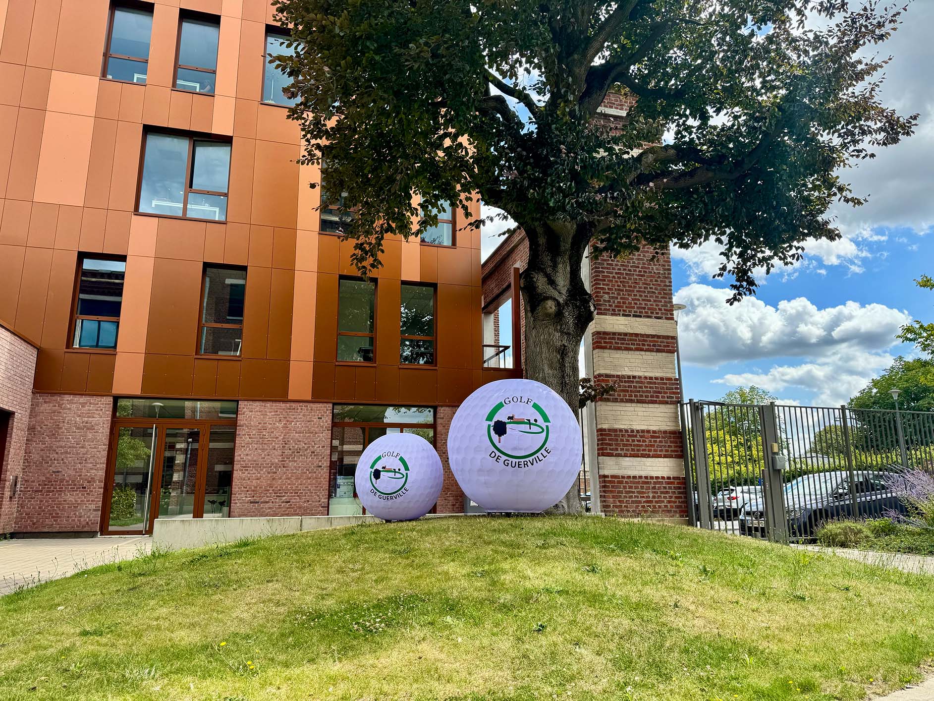 Pour théâtraliser les compétitions organisées au sein du golf, deux balles gonflables Golf de Guerville sont fabriquées en 1 m et 1,50 m de diamètre.