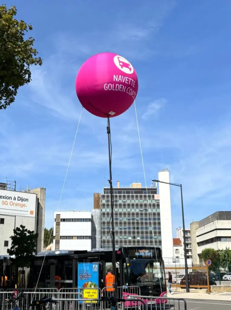 En effet, pour mettre en avant son service de navette gratuite pour les festivaliers du Golden Coast à Dijon, un ballon gonflable Kéolis de 2 m est fabriqué.