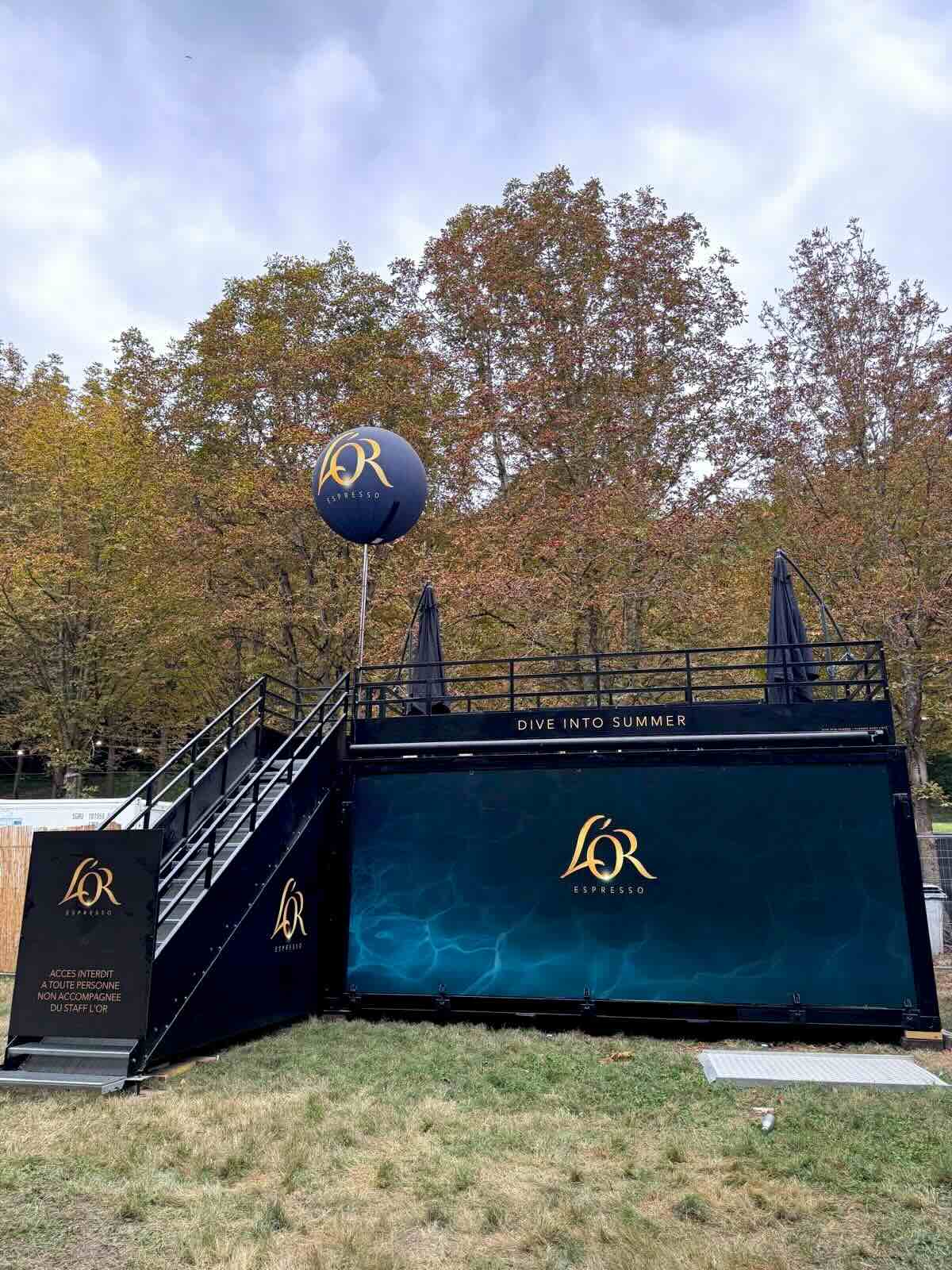 Quinze ballons gonflables sur-mât JDE de 2 mètres de diamètre, spécifiquement conçus pour les marques du groupe et réalisés par notre atelier. Ils apportent une touche d’originalité et de dynamisme aux points de vente. Ces ballons l’Or et « À chacun son café » captivent l’attention des clients, ajoutant une dimension visuelle saisissante à l’expérience d’achat.
