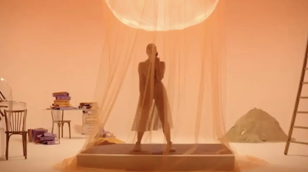 Au cours du clip, la sphère est déployée et accrochée par le dessus pour la faire monter en douceur sur quelques secondes.