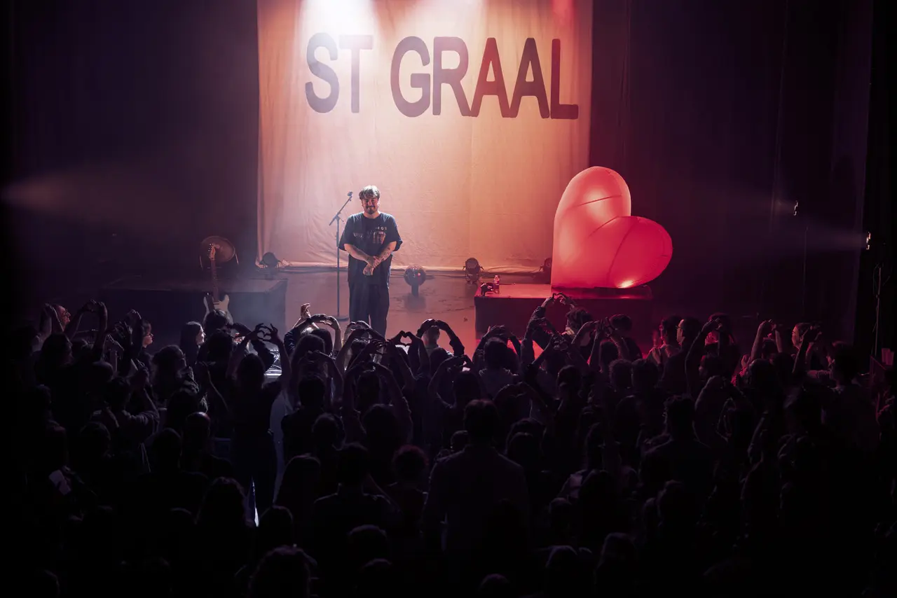 Pour scénariser ses concerts et faire écho à ses chansons, un coeur gonflable St Graal de 1,50 m (H) est fabriqué. Un éclairage LED est intégré à la structure.