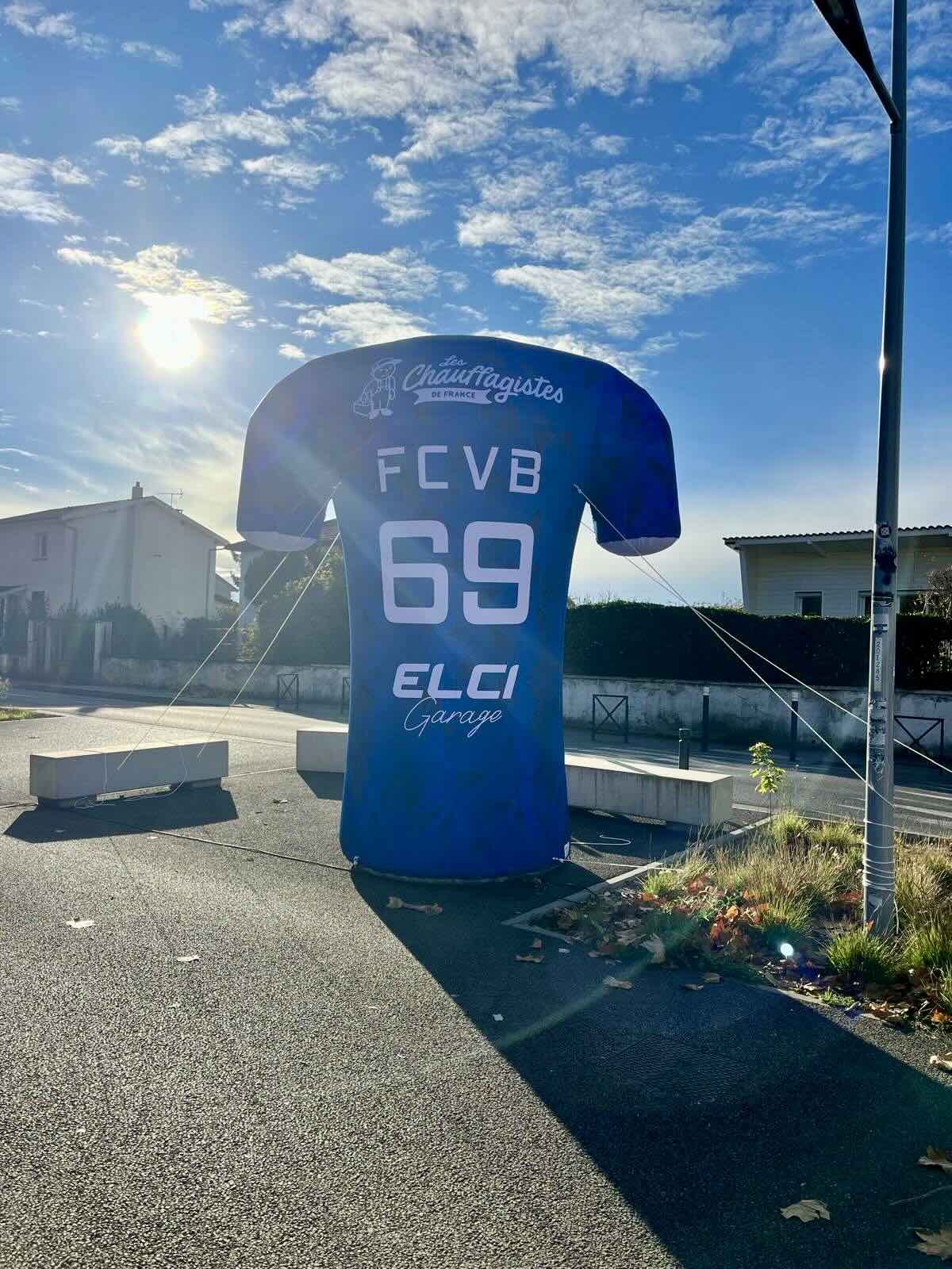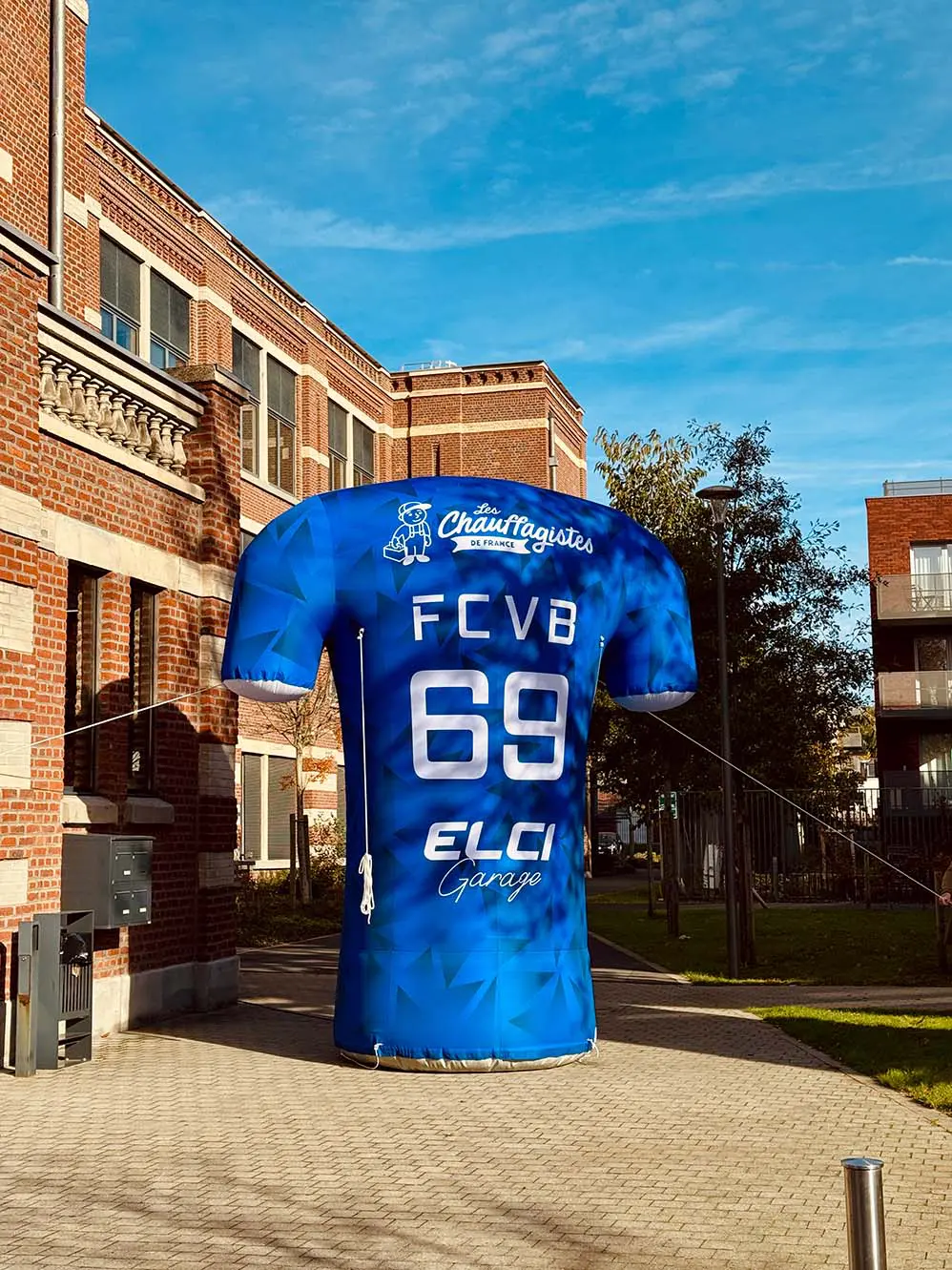 Cette collaboration nous invite à fabriquer un maillot gonflable FCVB de 4 m (H), réplique du maillot des joueurs du club.