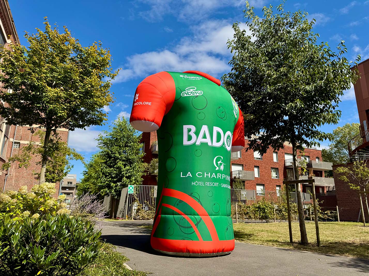 Le maillot gonflable géant est LA structure gonflable promotionnelle des clubs sportifs. Réplique du maillot que porte vos joueurs, il porte fièrement les couleurs de votre club. Il théâtralise vos temps forts et est un moyen d’attirer du public, des supporters ou de nouveaux licenciés.
