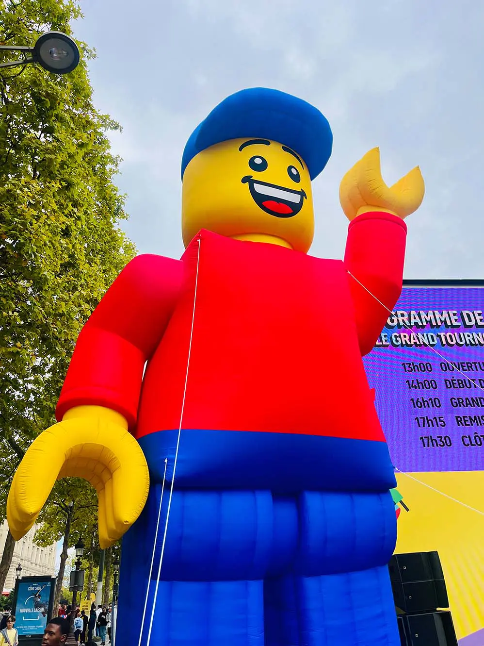 Une mascotte gonflable LEGO de 10 m de haut sur les Champs Elysées !