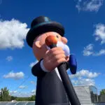 Un personnage gonflable Monopoly de 8,50 m (H) sur le toit d’un Carrefour !