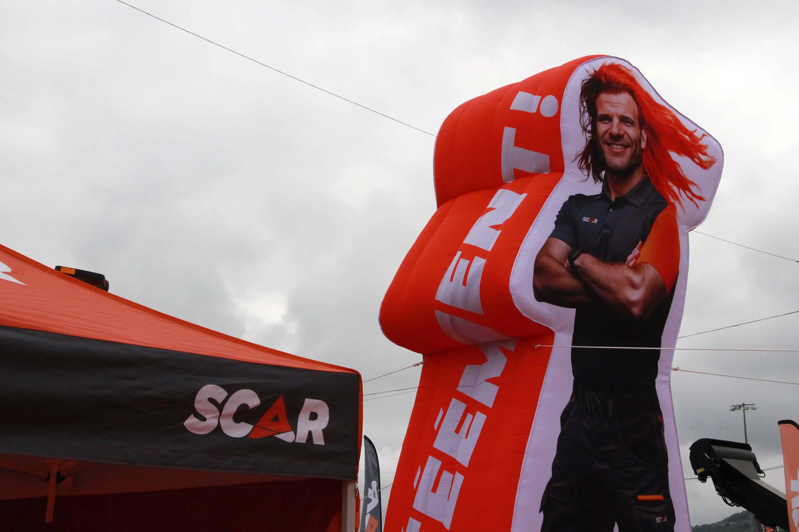 Une mascotte gonflable SCAR de 5 m (H) est fabriquée en 2D avec une impression sur toile de l’égérie et du slogan « Scarééément ».