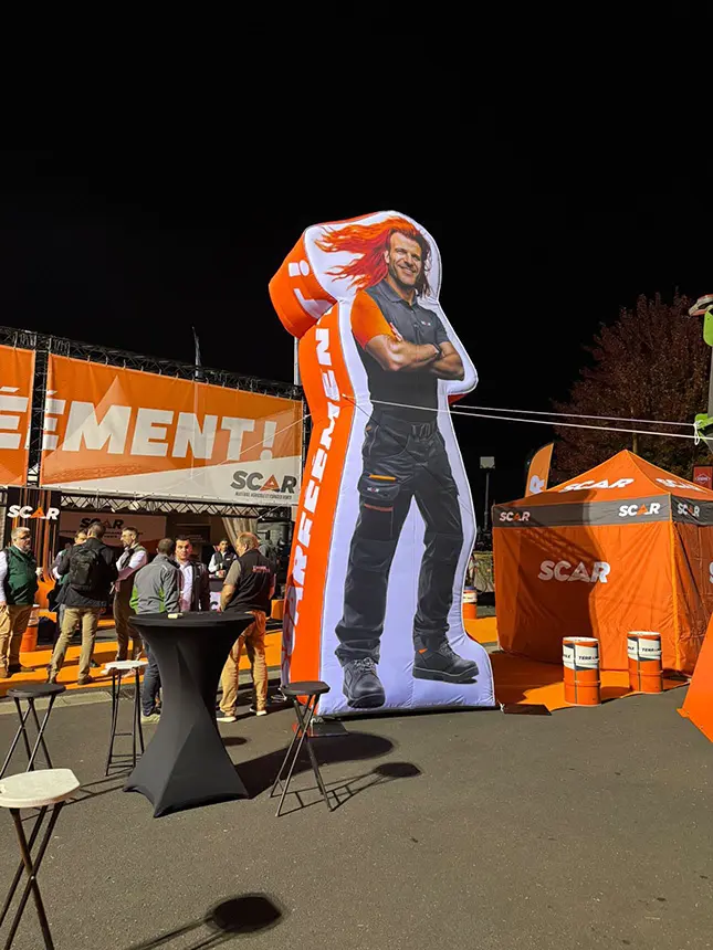 Par sa taille et son originalité, la PLV gonflable s’impose sur l’événement et théâtralise parfaitement le stand, on ne peut pas passé à côté !