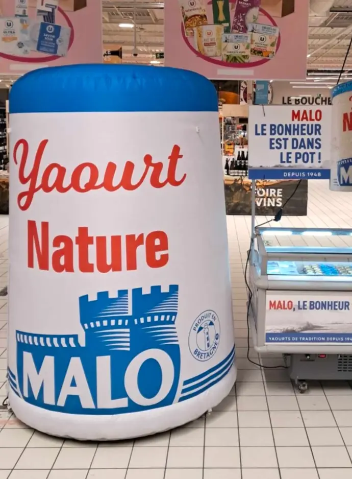 La marque utilise également ses pots gonflables en grande distribution pour optimiser la visibilité de ses produits.