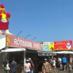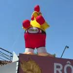 Gare à ceux qui ne viennent pas se régaler à la rôtisserie de Dédé, le roi du poulet ne rigole pas ! Avec sa ceinture et ses gants de boxeur, le poulet gonflable Dédé s’impose.