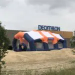 Decathlon a toujours poussé le sport au-delà de ses limites et rien n’est impossible pour cette enseigne sportive française. À l’occasion de l’ouverture du Decathlon de Treillières à Nantes, la marque a voulu offrir à ses clients une nouvelle surface de jeux tout-terrain. En effet Airsystems a fabriqué ce premier stand gonflable géant multisports Decathlon, un véritable stand gonflable publicitaire de 18 m (L) x 14 m (l) x 9 m (H) !